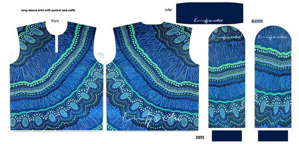 Long sleeved breathable micromesh fishing style shirt SPF 50 rated.